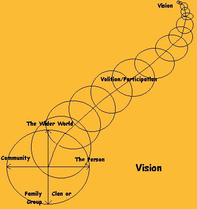Using the medicine wheel model of individual potentiality, it is possible to generate a framework for understanding what is really happening in the lives of any particular group within the community. For example, it is possible to consider the conditions and needs of unemployed youth. Their mental, emotional, physical and spiritual well-being can be looked at, both in terms of what it is now, but also what it would be like if it was good (in the ideal sense). Such an examination can best be done by groups of unemployed youth themselves, with the support of those who have allied with them, including a skilled facilitator.